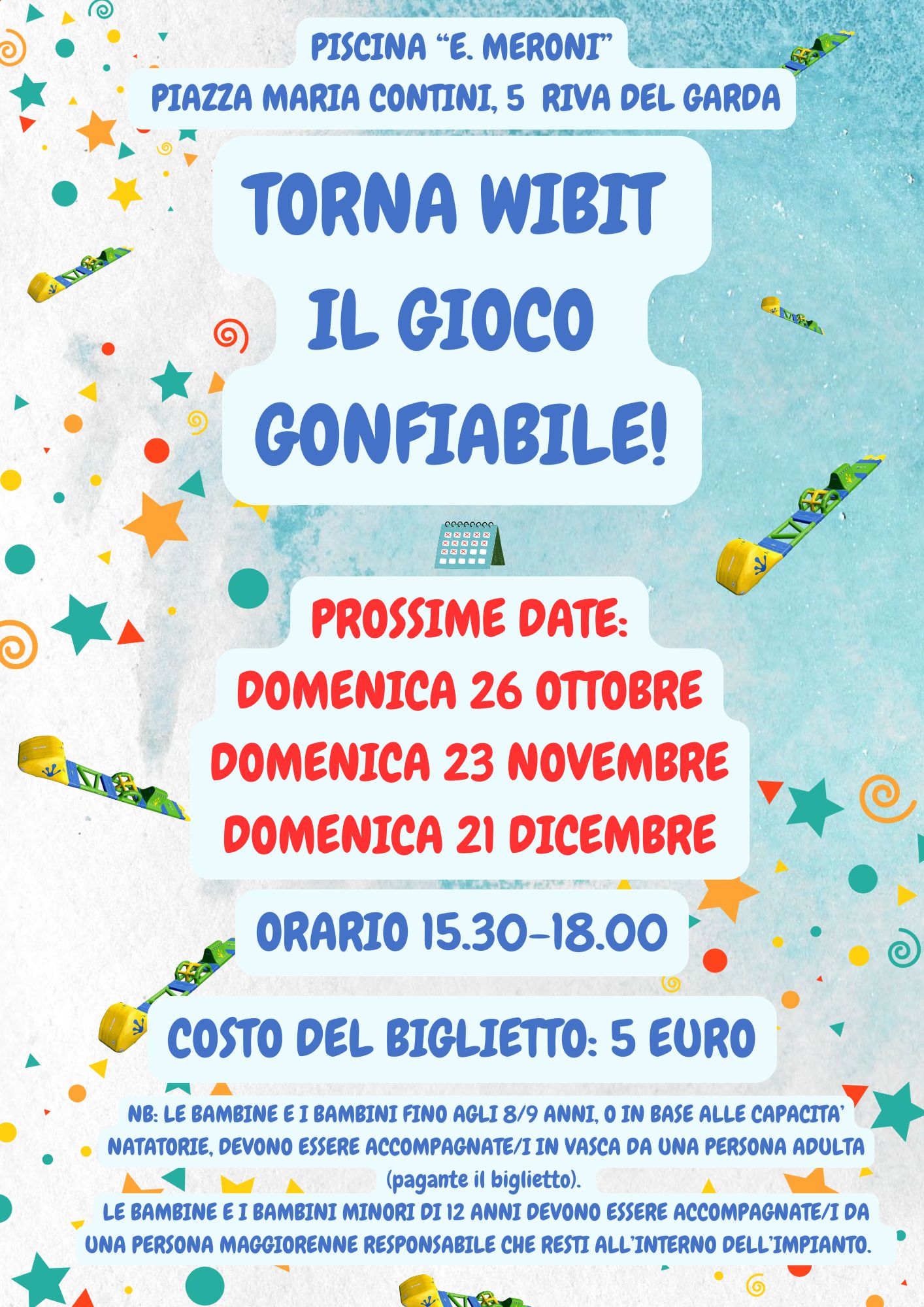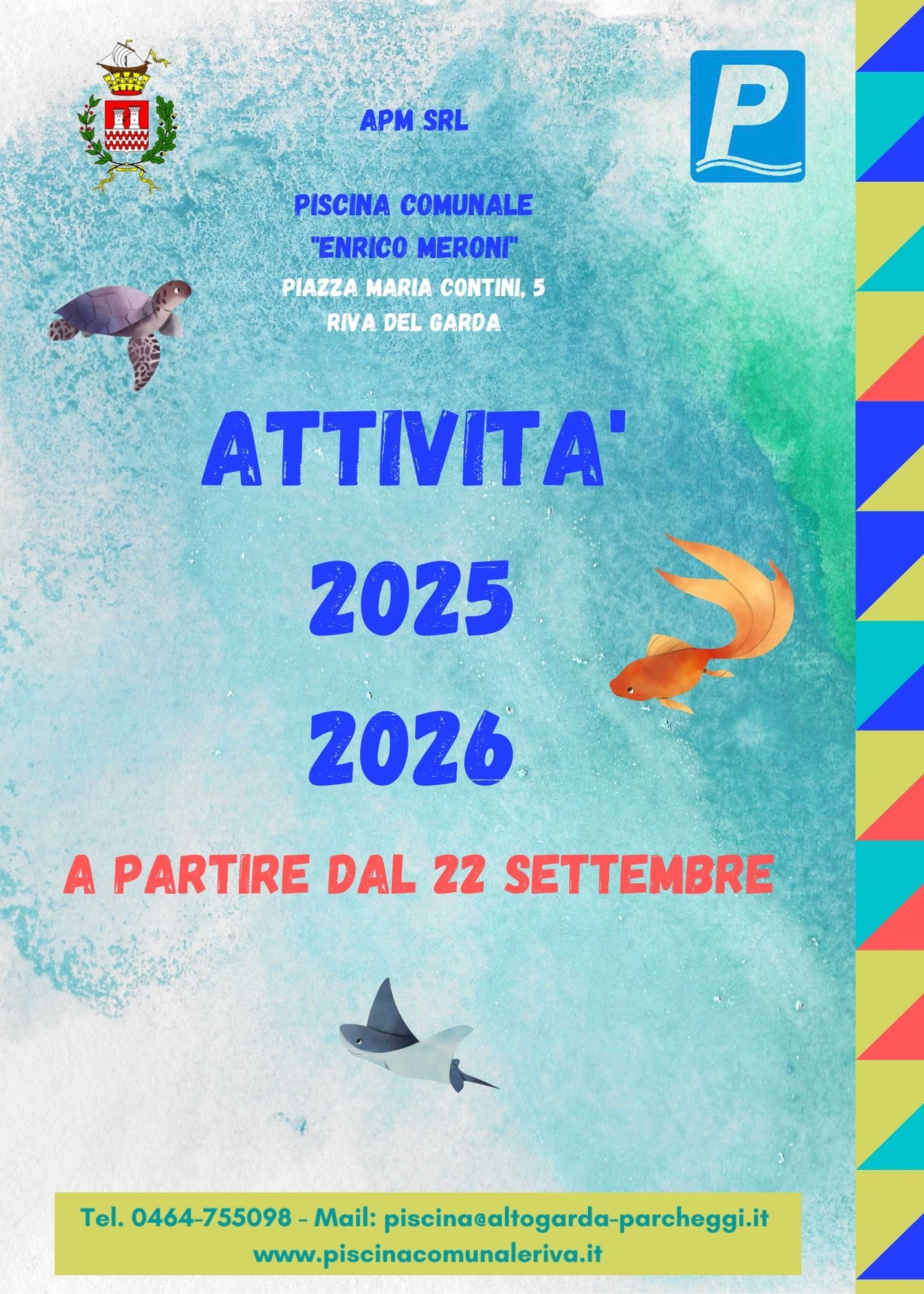 a partire dal 23.06.2025 sarà possibile per le Società/Associazioni sportive fare richiesta di spazi acqua presso la piscina comunale “E. Meroni” di Riva del Garda per la stagione 2025/2026 esclusivamente per lo svolgimento di attività sportiva.