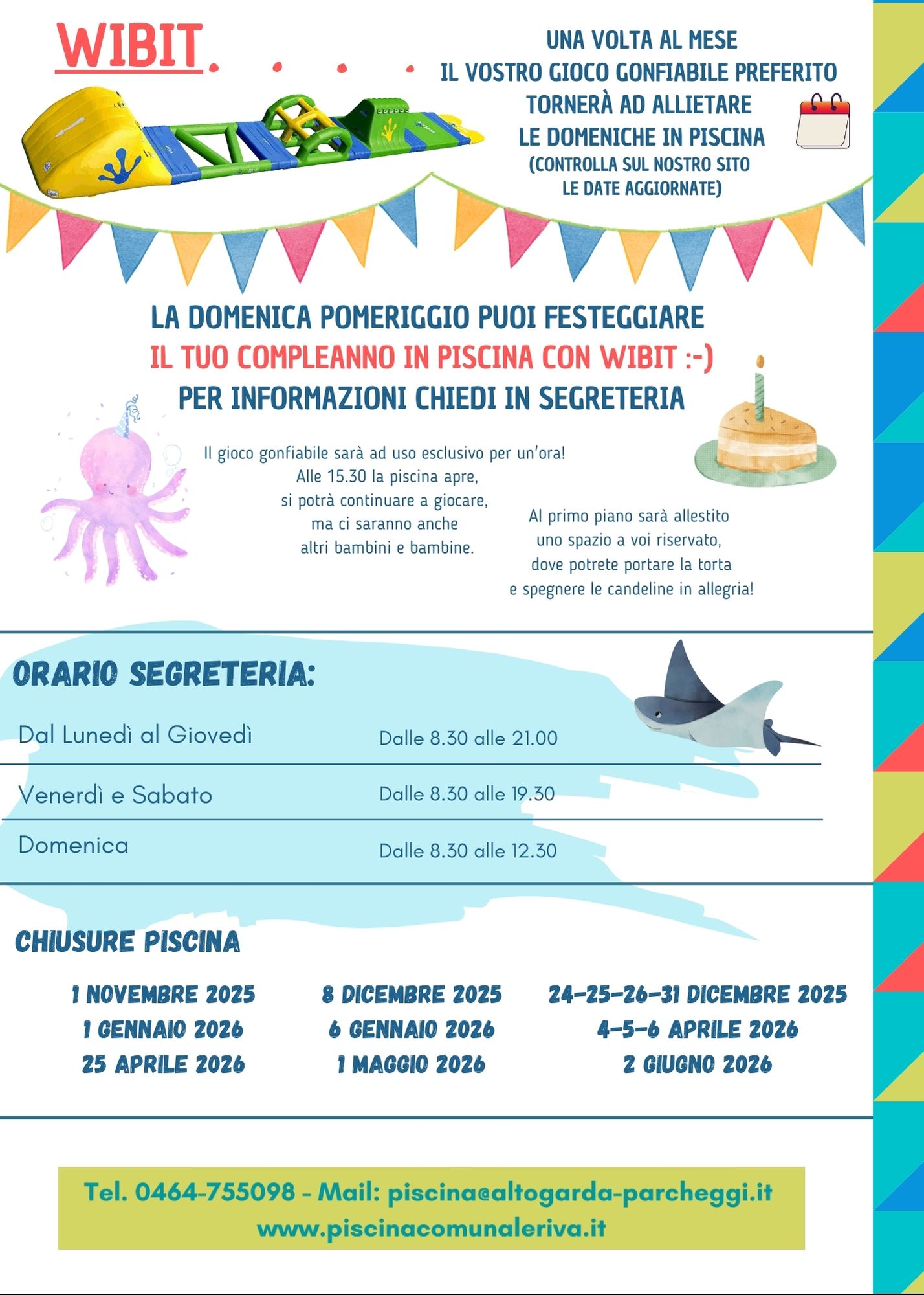 Si ricorda alla gentile utenza che venerdì 25 aprile e giovedì 1 maggio2025 la piscina sarà chiusa.